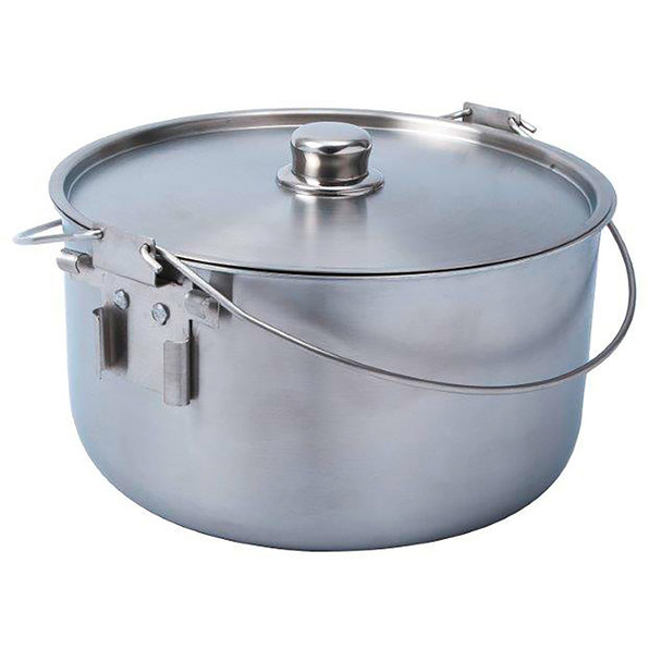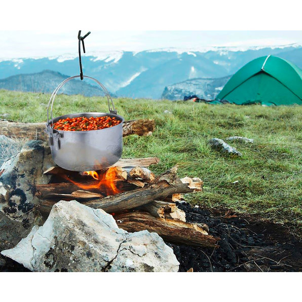 et pieds en acier inoxydableLe volume de cette marmite est suffisant pour un camp de vacances, votre futur bivouac ou votre prochaine garden-party. Fabriquée en acier inoxydable de grande qualité, elle se distingue néanmoins par son poids relativement faible. Les deux anses en-dehors du centre de gravité vous assurent un bon maintien lorsque vous la portez ou lorsqu'elle est posée sur le trépied. Équipée des pieds fournis, la marmite peut être posée au-dessus d'un réchaud ou d'un feu. Cette marmite est ainsi conçue pour tous les "coins cuisine" imaginables, des plaques à induction aux feux de camp !